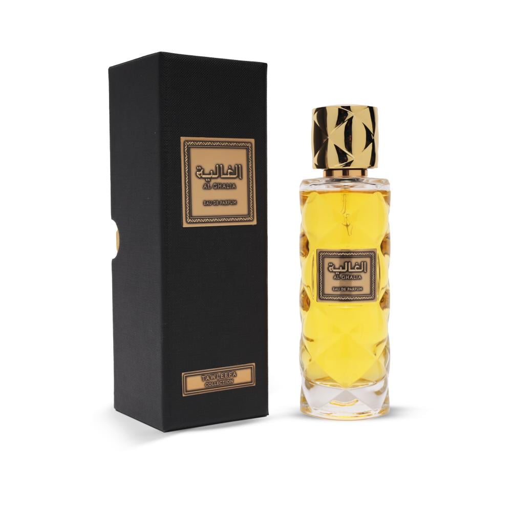 Tawleefa Al Ghalia a modern interpretation of the traditional Mukhallat, this fragrance opens with the notes of Italian bergamot on a background of spicy saffron and smoky accords, followed by the fresh and addictive scent of caramelised rose. Praline interlaces with amber woods at the heart of the fragrance and gradually flows into the musky base with woody undertones, particularly akigalawood for warmth and depth which gives the fragrance a distinct luxurious signature.