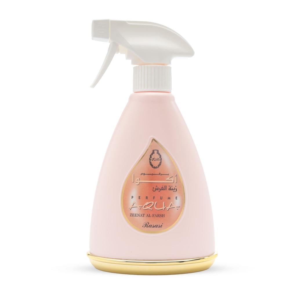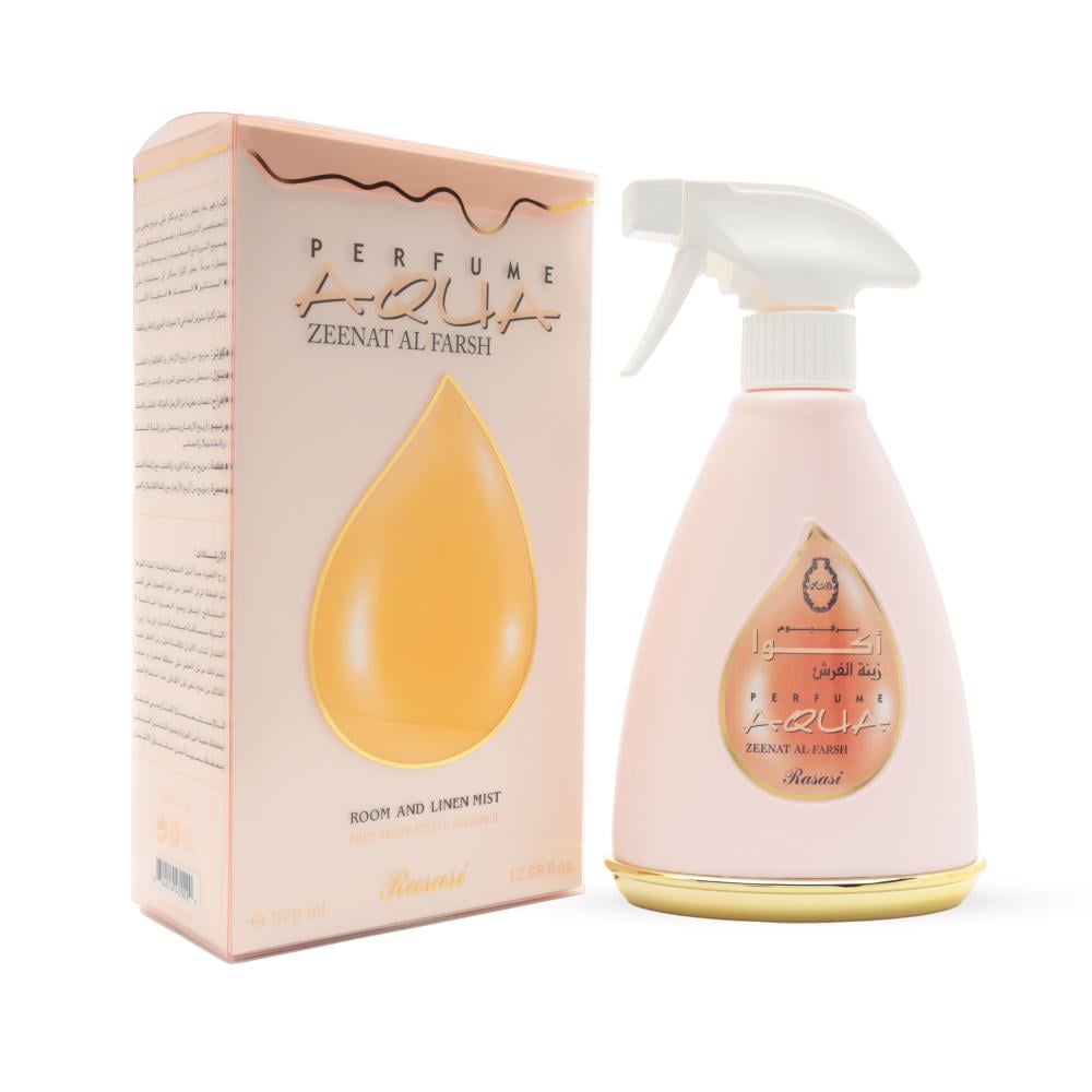 Perfume Aqua Zeenath is a premium water-based fragrance formulated with a secret blend of essential oils and anti-bacterial ingredients. Developed to effectively overcome unpleasant odours and add a fragrant touch to your ambience. Perfume Aqua can be used on curtains, carpets, bed linen, clothes while ironing, and on your hands after meals. All the ingredients used in Perfume Aqua are friendly to human skin.